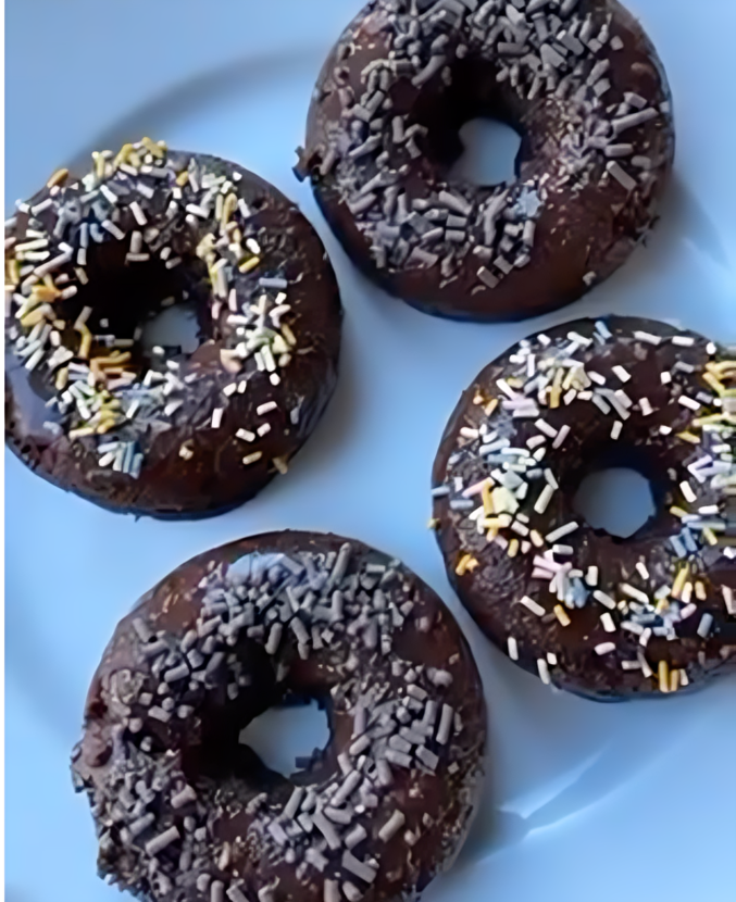 - Preheat oven to 350°F. Lightly coat a silicon donut mold with nonstick cooking spray and set aside.